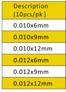 Sprężyna zamykająca Ni-Ti dostępna w rozmiarach: 0.010×6 mm, 0.010×9 mm, 0.010×12 mm, 0.012×6 mm, 0.012×9 mm, 0.012×12 mm (patrz opis w katalogu na stronie 30)
