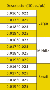 Sprężyna torque (momentująca) – mała, średnia, szeroka – różni się rozmiarem oczka: 0.016×0.022, 0.017×0.025, 0.018×0.025, 0.019×0.025 (szczegóły w katalogu na stronie 30